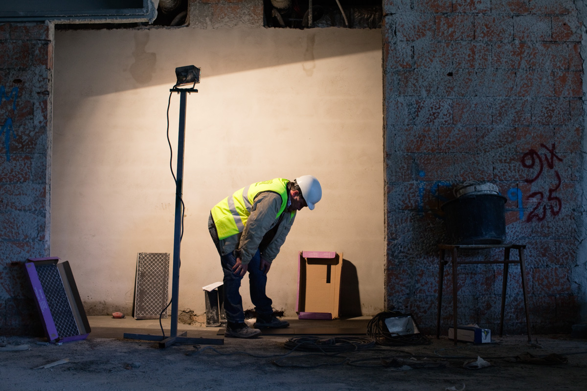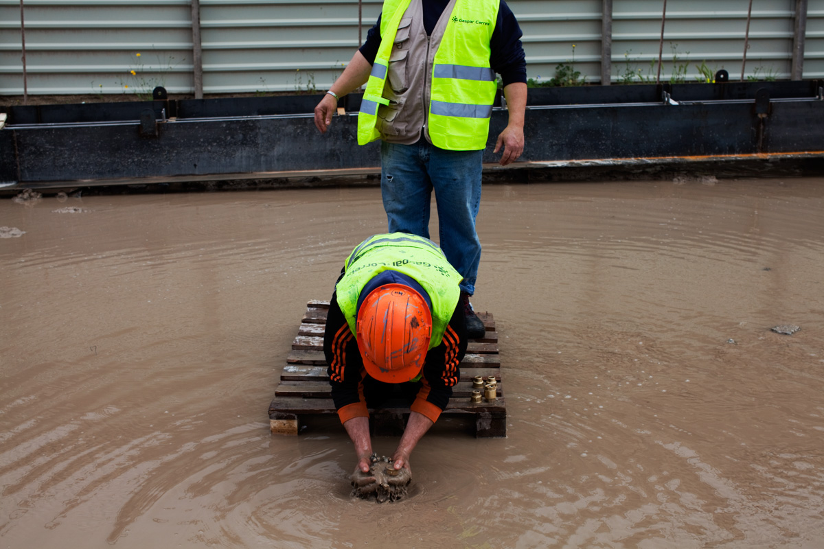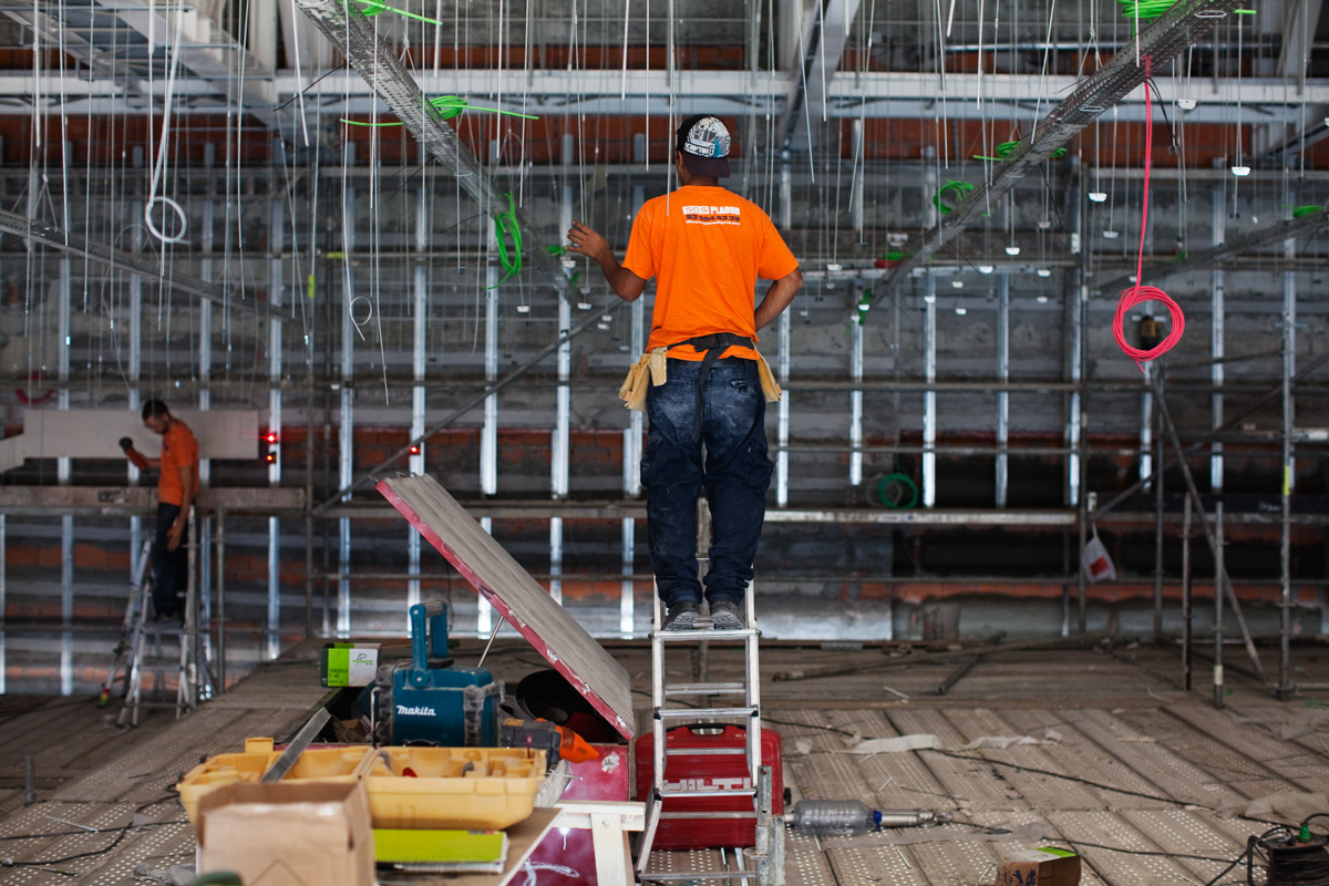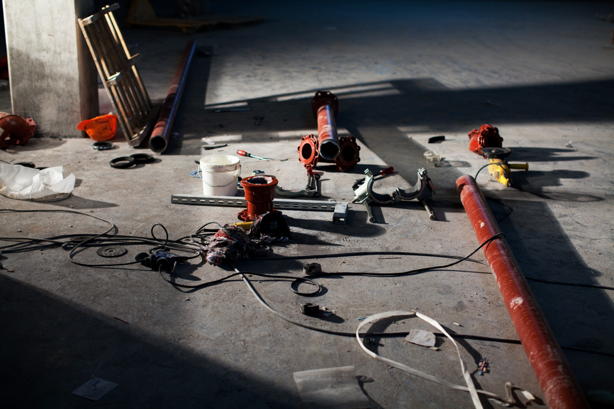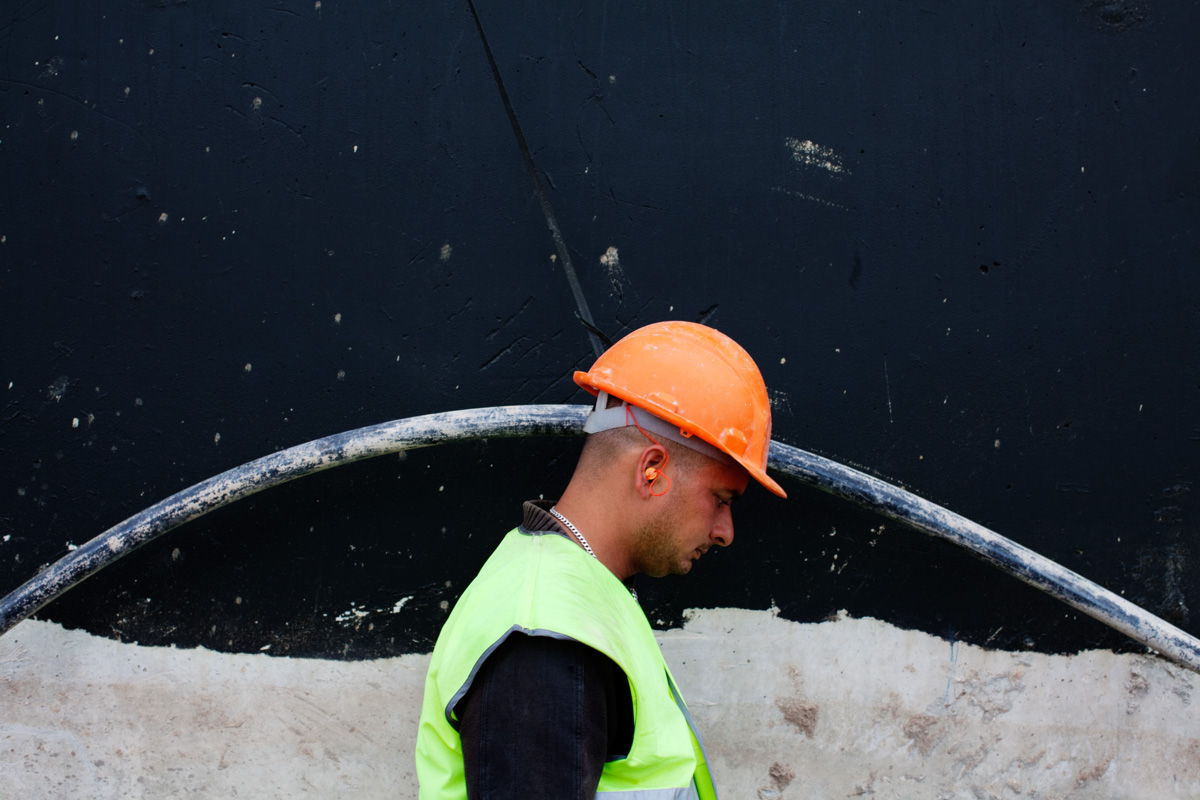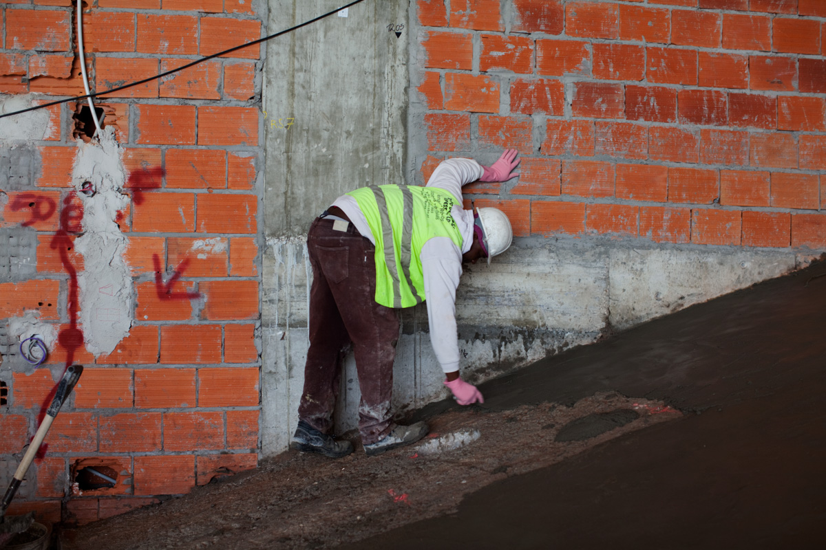 Building an edifice, assembling, giving shape to the ineffable. The photographs in Foundation make reference to the devices and strategies used to implement a construct. Each worker follows a clear dictate and knows what is expected of him. Collective success is hinged on individual delivery. Every particular has a timeline that runs concurrent with the emergence of a final design. These pictures report on the relation in scale between a detail and a whole, between what is imagined and what may be touched and held.Foundation I, Lisbon, Portugal, 2010 01 / 24 -